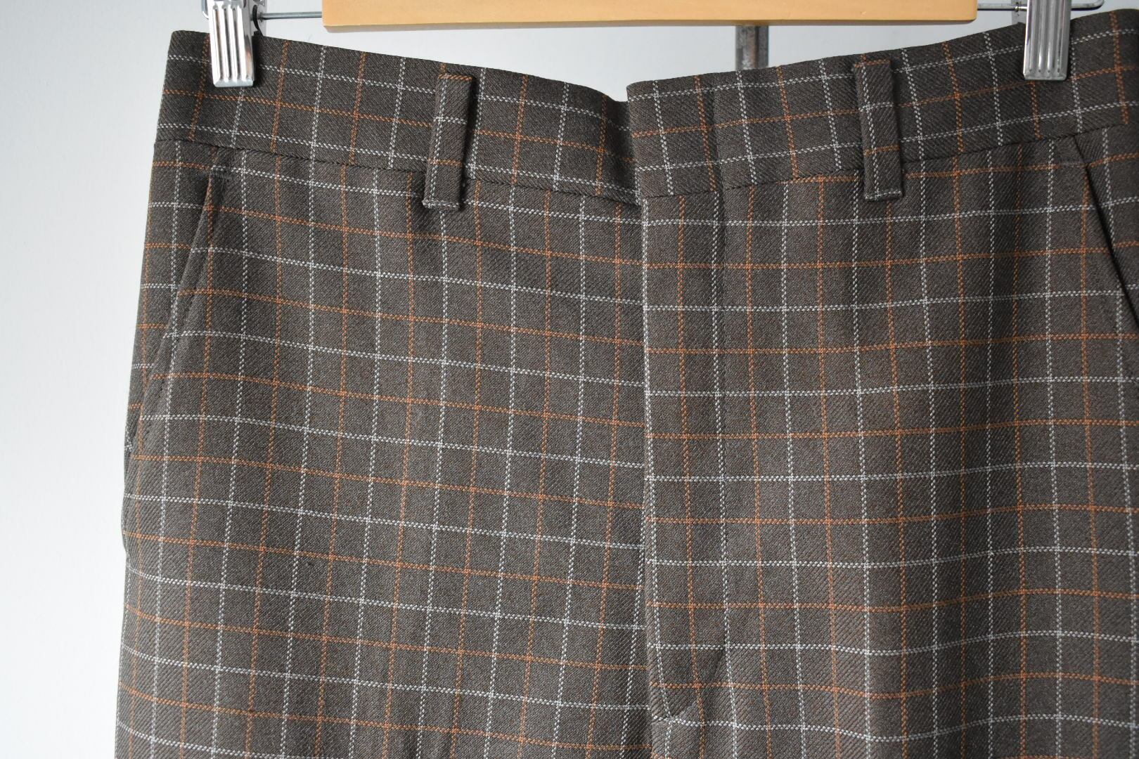 チェック柄の裾に向かって、広がっているブーツカットタイプです。