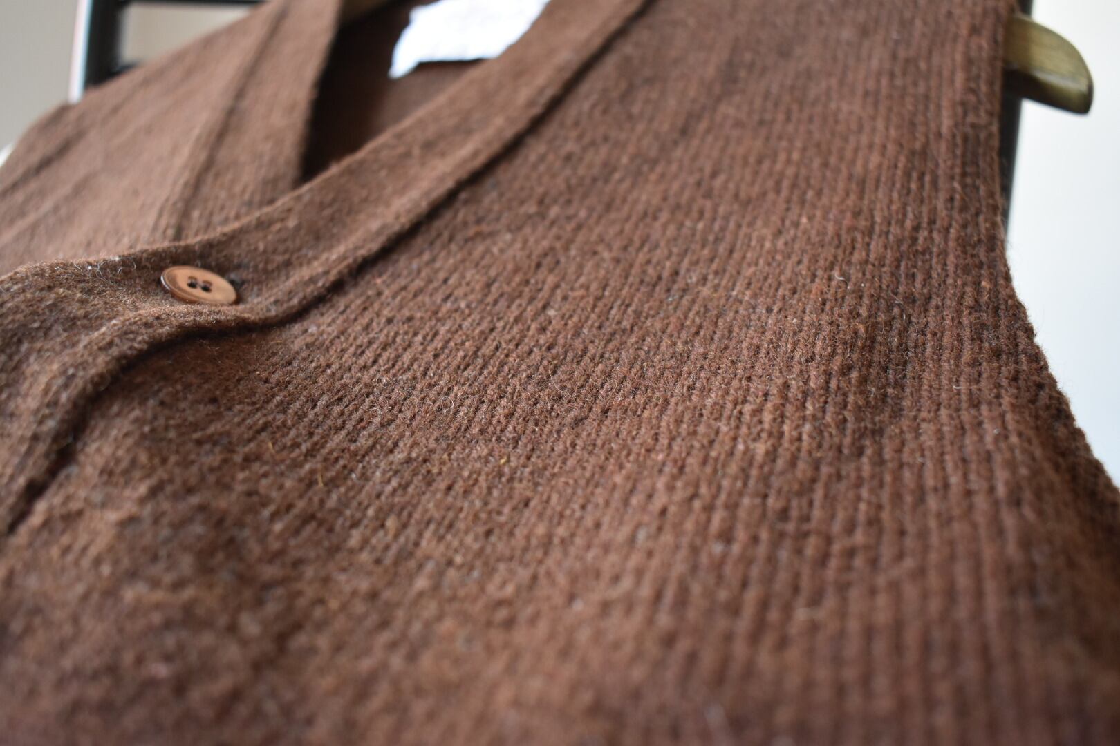 春秋冬に大活躍なベストです。ボタンで前が開くカーディガンタイプ。