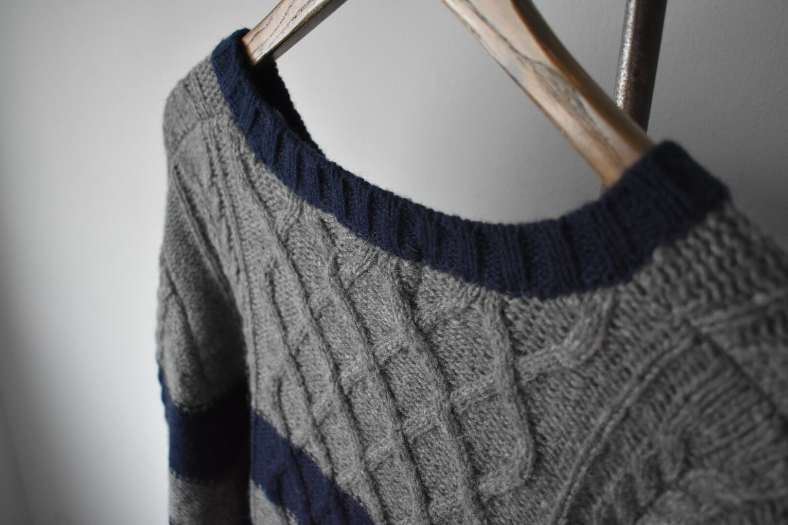 落ち着いたボーダーデザインの人気のウールセーターです。