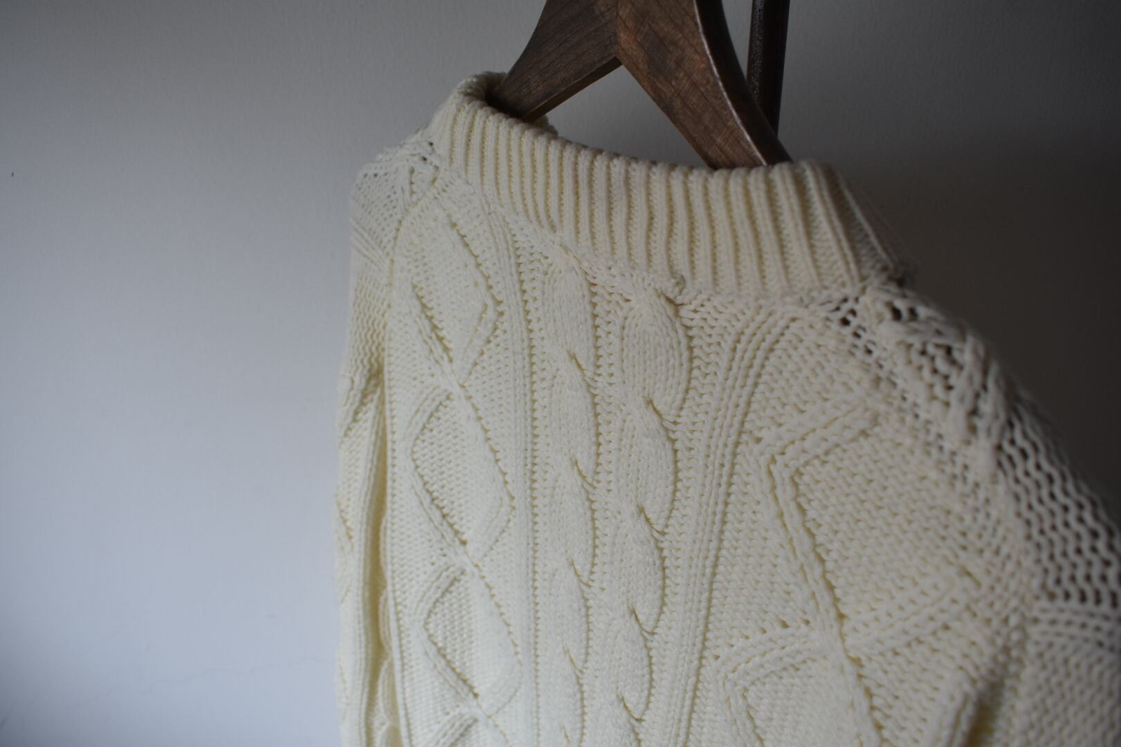 春先や秋に活躍するケーブル編みニットです。